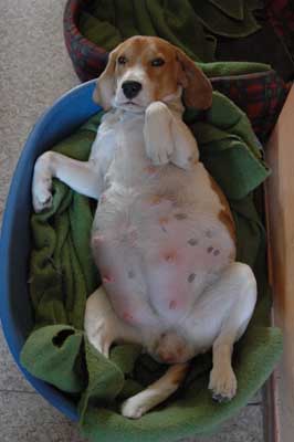 Takle vypadá Čuníkův pupík 14 dnů před porodem...